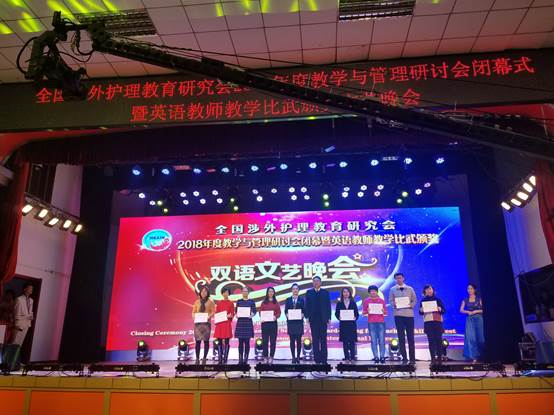 在刚刚落幕的“2018年度全国涉外护理专业英语教师教学比武活动”中,涉外第二教研室的韩方颖老师代表我校参赛,喜获“一等奖”的好成绩!备赛期间,系部高度重视,多次组织集体教研,涉外二组负责人赵锐老师更是反复组织组内教师从整体设计、课件制作、视频录制和教师展示全方位给予韩方颖老师积极地意见和建议。两个多月来,韩方颖老师在完成教学工作的同时,积极备战、刻苦演练。11月17日大赛当天,全国共有35所高职院校参会,22所学校参赛,可谓人才济济。经过六个小时紧张激烈地角逐,韩方颖老师不负众望,技压群芳,最终荣获一等奖的好成绩,为我校争得了荣誉!