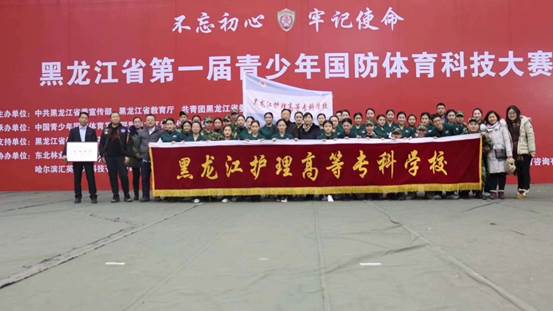 在纪念一二.九运动83周年之际,黑龙江省第一届青少年国防体育科技大赛于12月9日在东北林业大学体育馆举行,我校护理专业38名学生为本届比赛开幕式献上一个白衣天使战地急救表演项目,得到主席台领导、嘉宾及在场观众的赞赏,赢得热烈掌声。本届比赛由黑龙江省委宣传部、黑龙江省教育厅及共青团黑龙江省委联合主办,中国青少年国防体育发展联盟黑龙江省工委承办,黑龙江省体育发展基金会支持。