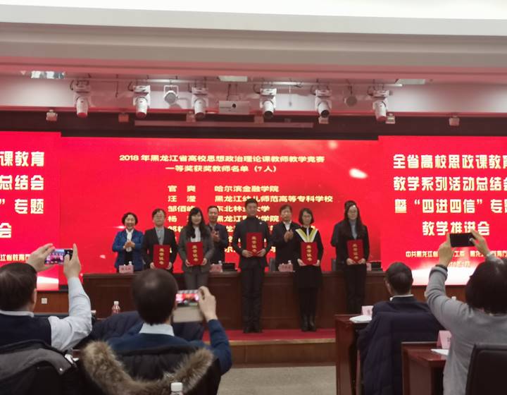 今天上午黑龙江省高校思政课教育教学系列活动总结表彰大会在友谊宫隆重举行,我校思政部邹艳凤、吴丽娜老师分别荣获2018年黑龙江省高校思想政治理论课教师教学竞赛一等奖和三等奖。祝贺两位老师!