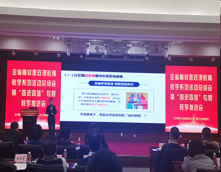 在今天的全省高校思政课教育教学系列活动总结表彰大会上,按照教育厅安排,邹艳凤老师作为一等奖获奖选手中唯一一名高职高专学校代表做了精彩的教学展示。