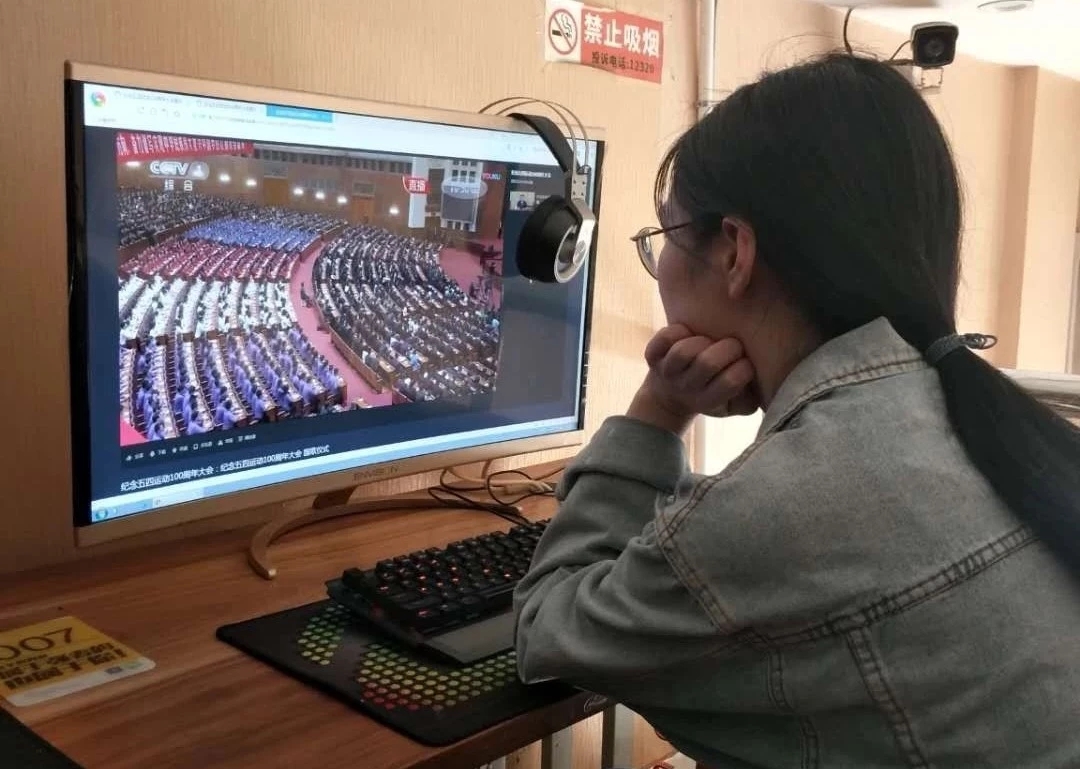 4月30日纪念五四运动100周年大会在北京人民大会堂隆重举行,习近平总书记发表重要讲话。系党支部书记和辅导员提前布置学生观看大会直播,深入学习习近平总书记在大会上的重要讲话精神。