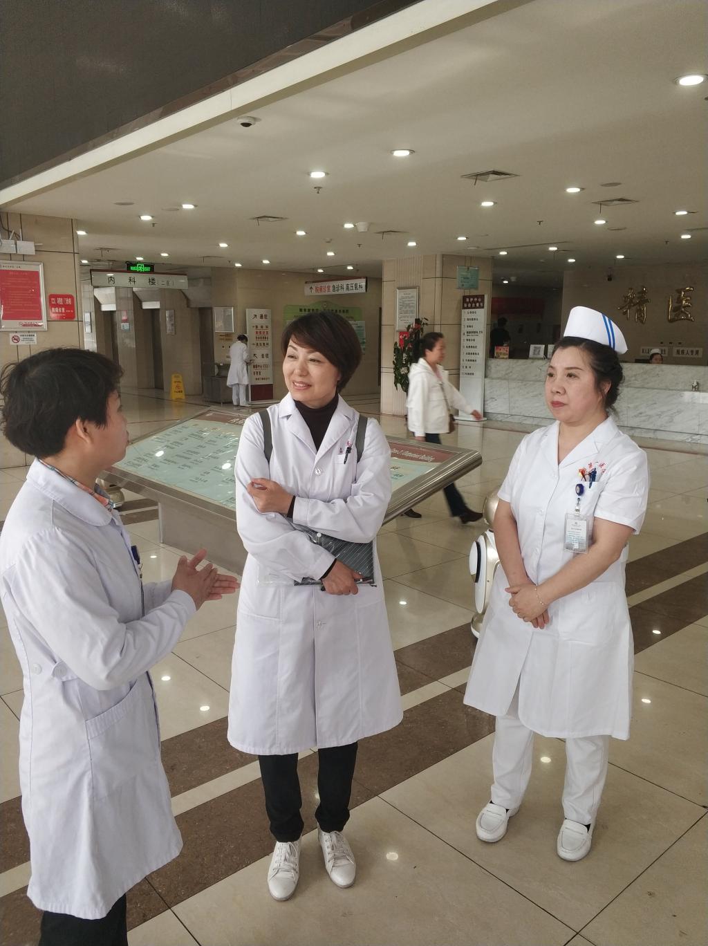 座谈会后,分为四组对市第一医院进行实地走访,参观医院医疗设施和环境,宽敞明亮、设备精良的门诊,环境优雅、温馨舒适的住院病房等。门诊的导诊机器人美丽公主小宝在回答了李淑玲主任关于情绪、疾病诊询等几个随机问题后,应邀翩翩起舞,引起了阵阵赞叹声。