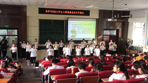 5月23日晚17:00,在南岗校区学术报告厅召开“525”大学生心理健康活动月启动仪式。学生们通过舞蹈、手语、宣誓和签名许愿仪式,展现了龙护专学子风采,同时也宣传了“爱自己更健康”的心理健康理念。活动的最后心理教研室周立超老师以“直面压力,笑对实习”为主题,为17级即将走上实习岗位的学生进行心理讲座。