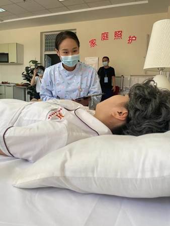 第四站由基础护理教研室郭万如老师对健康与社会照护赛项进行分析,分享备赛经验,由国赛选手针对健康与社会照护赛项中家庭照护模块进行演示。