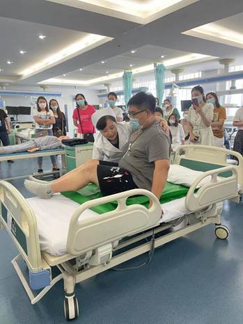 2022年7月11日上午,国家级继续医学教育项目卫生职业院校护理教师教育教学改革能力提升培训班学员来我校护理实训中心进行工作坊内容交流学习。