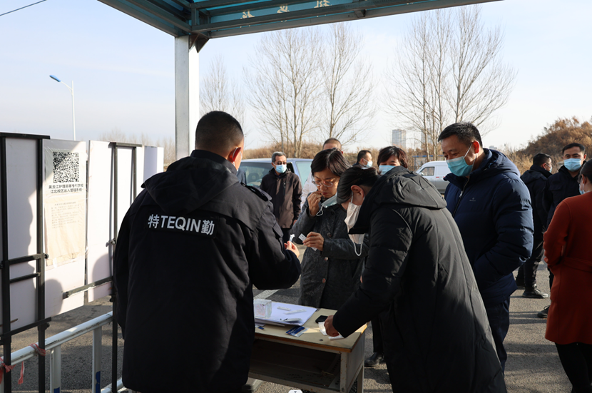 张晓杰校长一行按疫情防控要求先在校门口进行入校前扫码、测温、核酸抗原检测和登记,之后分别到校门卫、快递室、商服、教学楼、食堂、实训中心、校医室、隔离室、学生寝室、监控室、浴室等场所进行实地检查。