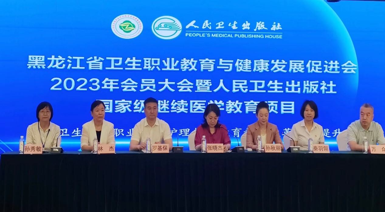 2023年6月30日,黑龙江省卫生职业教育与健康发展促进会(以下简称“促进会”)2023年会员代表大会在佳木斯市召开。本次会议由黑龙江省卫生职业教育与健康发展促进会和黑龙江护理高等专科学校联合主办,黑龙江省林业卫校承办,人民卫生出版社支持,会长单位黑龙江护理高等专科学校校长张晓杰、副校长杨丽妲、佳木斯市教育局党组书记、局长孙秋丽、黑龙江省林业卫生学校书记秦羽翎、校长罗基保、哈尔滨市卫生学校校长赵龙海、齐齐哈尔市卫生学校校长张丽岩、人民卫生出版社科创公司总经理万众以及促进会会员出席会议。