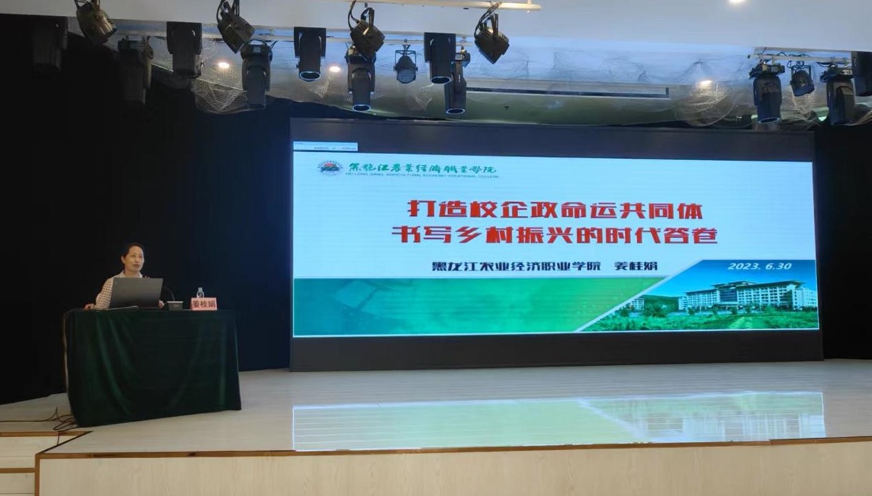 黑龙江农业经济职业学院副院长兼省高等教育督导专家姜桂娟教授作了题为“打造校企政命运共同体 书写乡村振兴的时代答卷”的讲座。