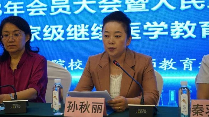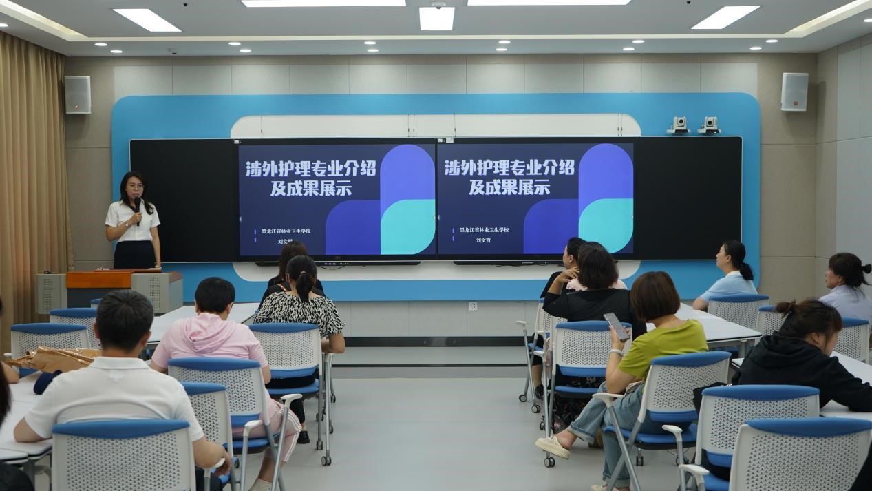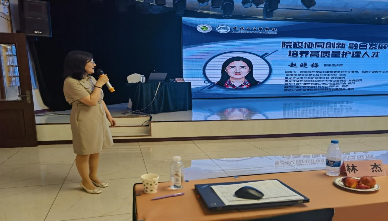 哈医大一院临床护理实习教学委员会主任委员、临床护理教学总带教赵晓梅讲授“院校协同创新 融合发展,培养高质量护理人才”。