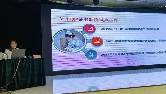 中华护理学会院校教育工作委员会专家库专家、黑龙江省护理学会秘书长、黑龙江省1+X证书老年护理服务需求评估职业技能实训基地负责人李玲教授与黑龙江省海员总医院老年医学中心主任刘丹娜讲授“老年护理服务需求评估实操考核项目的开发与实践”。