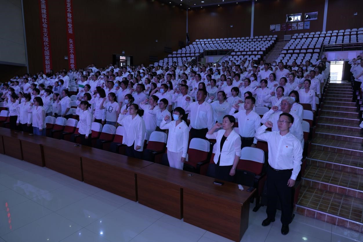 会上,在党委书记田国忠带领下,全校党员面向鲜红的党旗,齐声诵读入党誓词。这铮铮誓言是担当、是责任,是初心所向、是行之所往。铿锵有力的誓言响彻会场,表达了对党的无限忠诚和为共产主义奋斗终身的坚定决心。