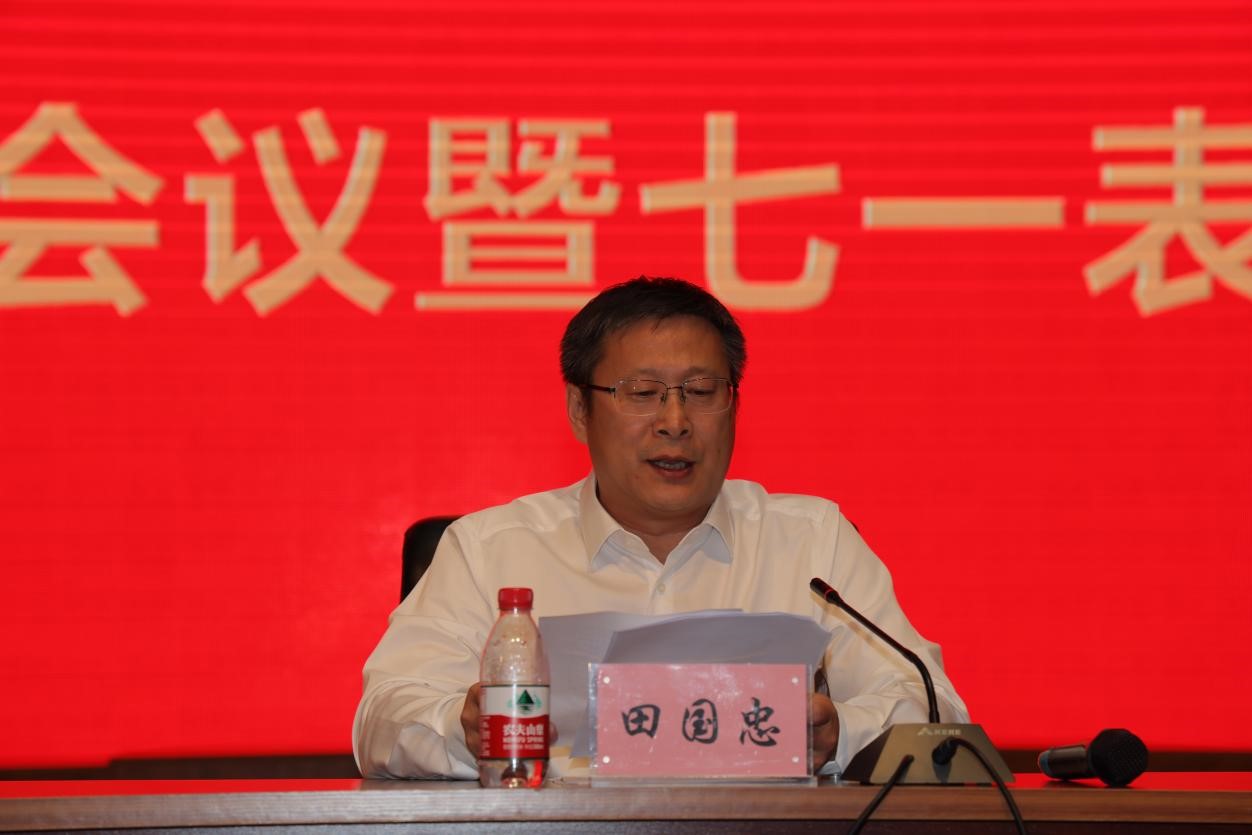 党委书记田国忠代表学校党委,向受表彰的集体和个人表示祝贺,向为学校事业发展辛苦付出、作出贡献的广大党员、师生员工致以敬意和感谢。他深情回顾了过去一年来,全校各级党组织和广大党员干部师生,充分发挥战斗堡垒作用和先锋模范作用,经历关键时刻,经受各种考验,勠力同心推动龙护专事业取得的许多新成绩:认真学习贯彻党的二十大精神、落实省第十三次党代会精神,坚决将习近平总书记关于教育强国重要讲话精神落在实处;紧紧围绕立德树人根本任务,深化教育教学改革,坚持以学生为中心,强化三全育人体系建设;坚持新时代党的建设总要求,发挥引领作用,以党建提质增效工程为抓手,持续提升党建工作水平,建强基层战斗堡垒,推动党建融入中心工作;坚持以师生为中心,厚植为民情怀,进一步走好新时代群众路线,健全“我为群众办实事”常态长效机制,用心用情解决师生“急难愁盼”,组建以党员干部为骨干的教工防疫突击队,让广大师生感受到“关键时刻有组织,守护校园靠组织”。
