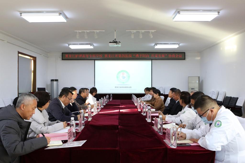 2023年12月7日下午,黑龙江护理高等专科学校和黑龙江省四院在省四院召开了“携手同向 共谋发展”协商会议。学校和医院的党政班子成员全员参加会议,共叙友谊,共谋发展,共享未来。