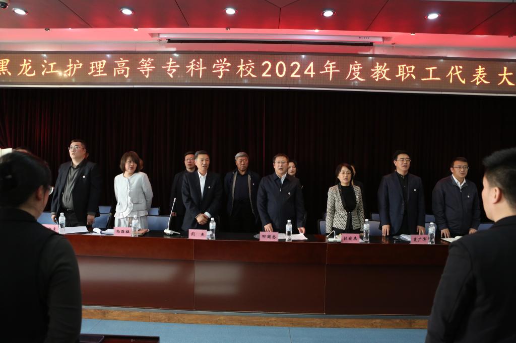 黑龙江护理高等专科学校2024年度教职工代表大会在校歌《追梦天使》中胜利闭幕。