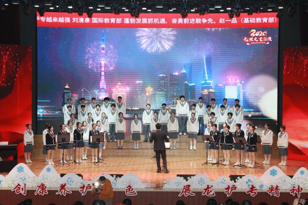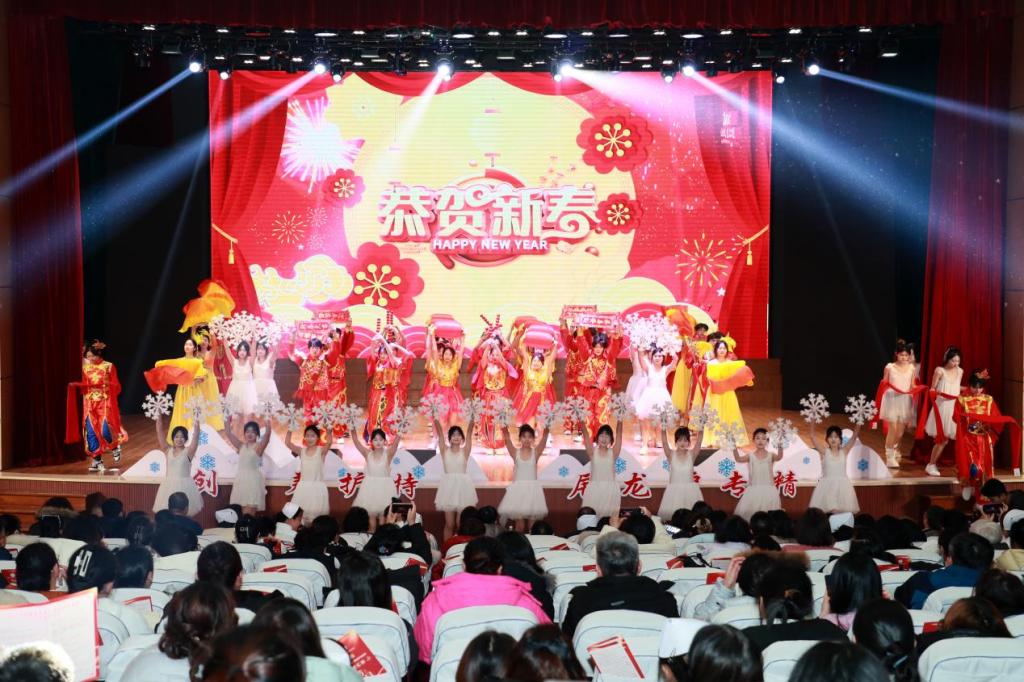 整个汇演过程中,还精心穿插了三次激动人心的抽奖环节,奖品琳琅满目、丰富多样,每一次抽奖都引得台下师生们翘首以盼、阵阵欢呼,将现场气氛一次次推向高潮。与此同时,天使剧场主屏幕上不断滚动着教职工与学生们的新年祝福,一行行温暖的话语、一个个美好的期许,如冬日暖阳般,照耀着整个会场,传递着浓浓的温情与希望。