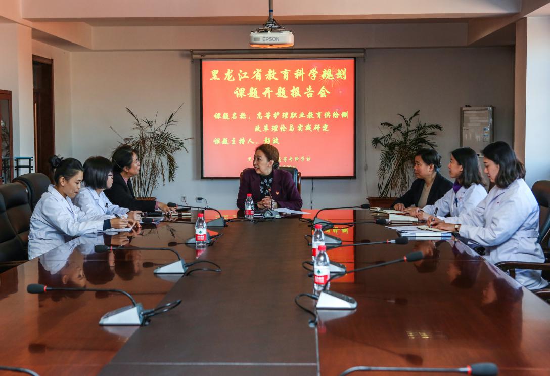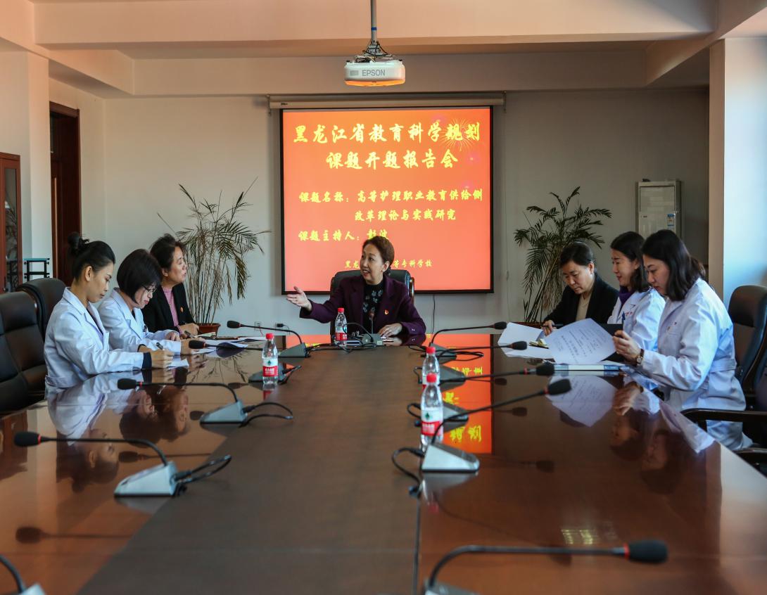 该课题是黑龙江省教育科学规划办“十三五”重点课题,由彭波副校长任课题组组长,研究成员为李玲、林杰、初岩、姜学、郝庆娟等校领导及护理系老师,共同出席开题会的还有科研处尹宏月、宋辞两位老师。
