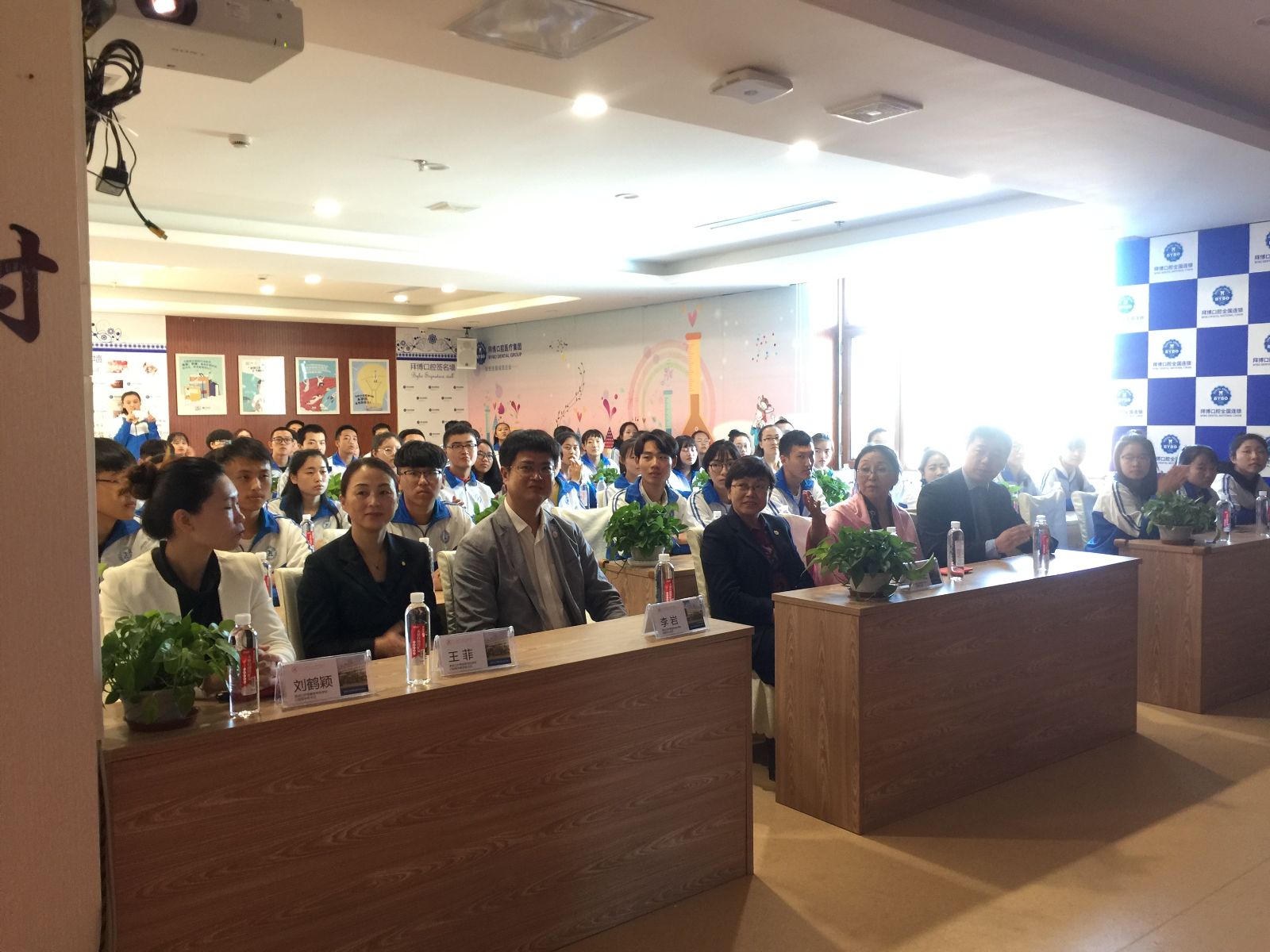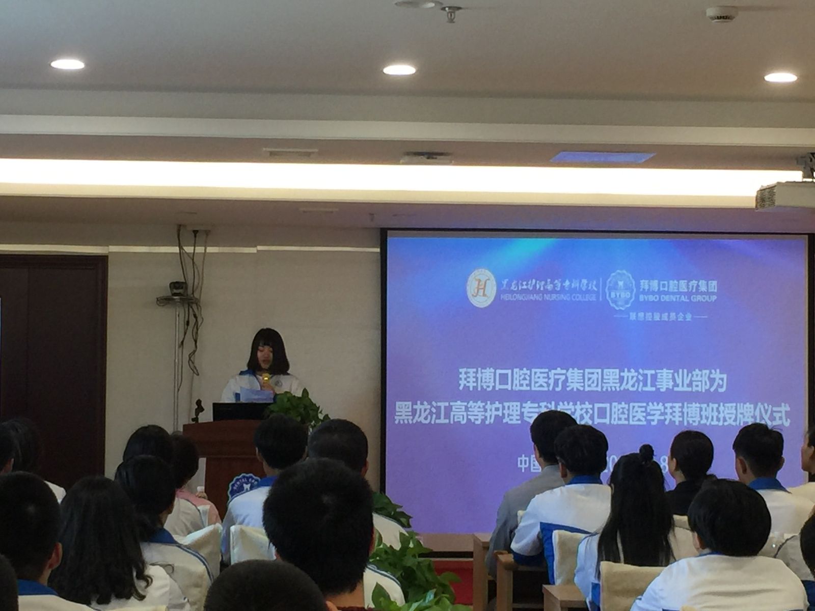 为贯彻学校“校企合作”办学思想,提高办学综合实力,加强师资队伍建设,在校领导的支持下,在口腔医学系和拜博口腔医疗集团的共同努力下,黑龙江护理高等专科学校口腔医学系首届拜博班圆满完成招生并于2017年9月8日在拜博口腔医疗集团黑龙江事业部举行了授牌仪式。校企合作、职教中心办公室主任李岩、口腔医学系主任马玉宏、书记刘鹤颖、口腔医学教研室主任王菲、拜博口腔医疗集团黑龙江事业部总经理王雪等领导和口腔医学系部分教师代表参加了本次授牌仪式。