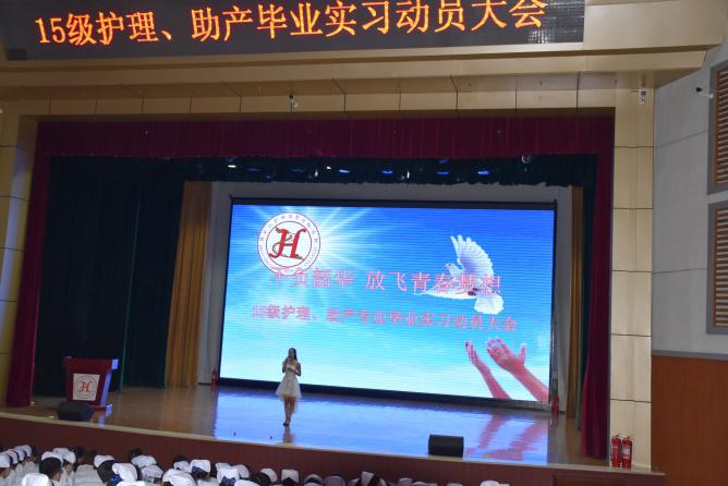 为做好2015级学生毕业实习的准备工作,使学生明确实习的目的、意义,引导学生做好实习工作。5月23日下午,在天使剧场召开了2015级护理、助产专业学生毕业实习动员大会,副校长夏广军、护理系书记姜哲,涉外护理系书记杨丽颖,护理系副主任张瑜晶,教务处实习管理教师、各院系辅导员老师及2015级护理、助产专业省内和自主实习生参加此次大会。此次会议由教务处主办。