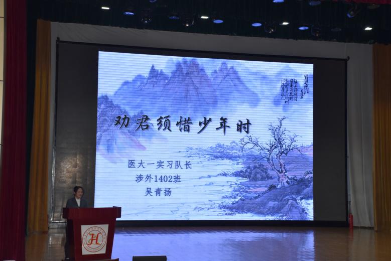 2014级医大一院实习队长吴青扬和2015级刘东璐在大会上分享了她们的实践经验,让同学们提前领略临床工作最基本的注意事项。王金潮作为实习生代表发言,决心传承护高专校训,继续在临床岗位为学校增光添彩。同学们表演的手语舞《最好的未来》表达了一种对临床实习的期待和憧憬。