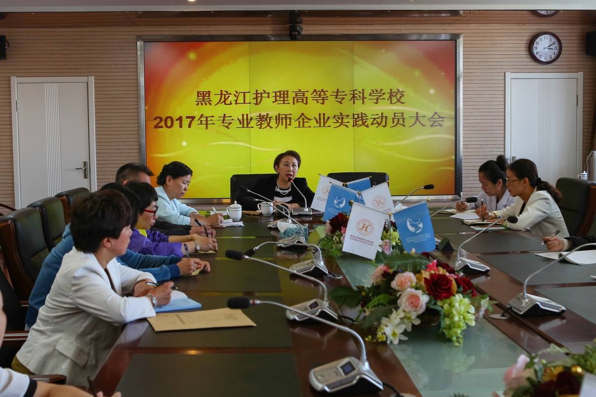 2017年6月5日,在实训楼会议室召开了黑龙江护理高等专科学校2017年专业教师企业实践动员大会。出席会议的有副校长彭波、护理系主任林杰、口腔医学系主任马玉红、教务处处长施泓、教务处科长廖林楠,以及参加本轮企业实践的39名专业教师。彭波副校长高度重视,亲自主持会议并提出要求。