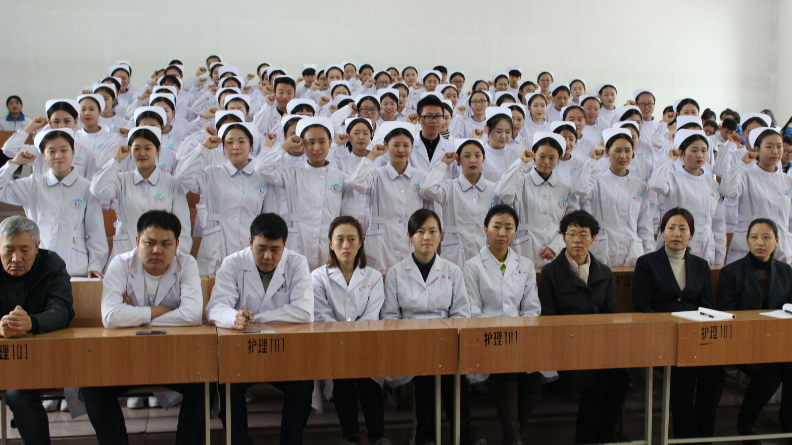 在会上,姜哲书记宣布护理系“技能队暨天使志愿者服务队”成立决定。副书记宗晓宣布天使团队名单。参会教师为志愿团团员佩戴胸章、全体志愿团团员宣誓,团员代表王萌发言。实训中心孙联伟主任宣布管理办法,最后由林杰主任对全体志愿者成员讲话。讲话中提出:天使志愿者团队”是培养高素质、技术技能护理人才的新途径、是学生成长的阶梯,也是护理系专业建设的新举措。要求志愿者护士团队们传承我校“天使摇篮”历史使命责任,发扬“南丁格尔精神”和“志愿者服务精神”。从礼仪、技能、服务全面得到锻炼。提出“两高、两严”的要求,即高标准、高质量、严格管理、严格考核。让团队成员努力成为全校学生的榜样、骨干,带动更多的同学,强化技能,提升素质,夯实理论基础,努力提升自身的社会适应能力,为护理事业增添靓丽的光彩。
