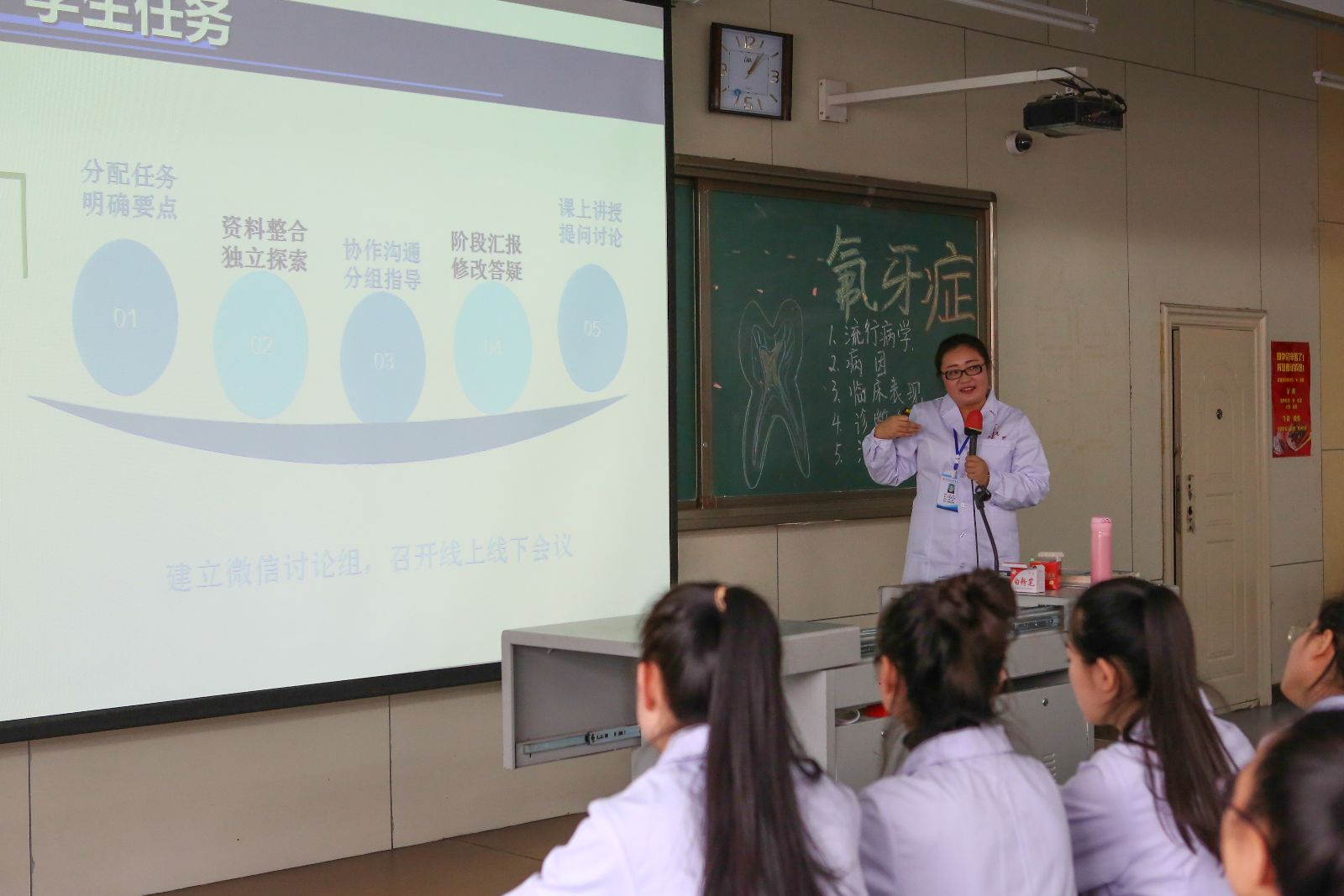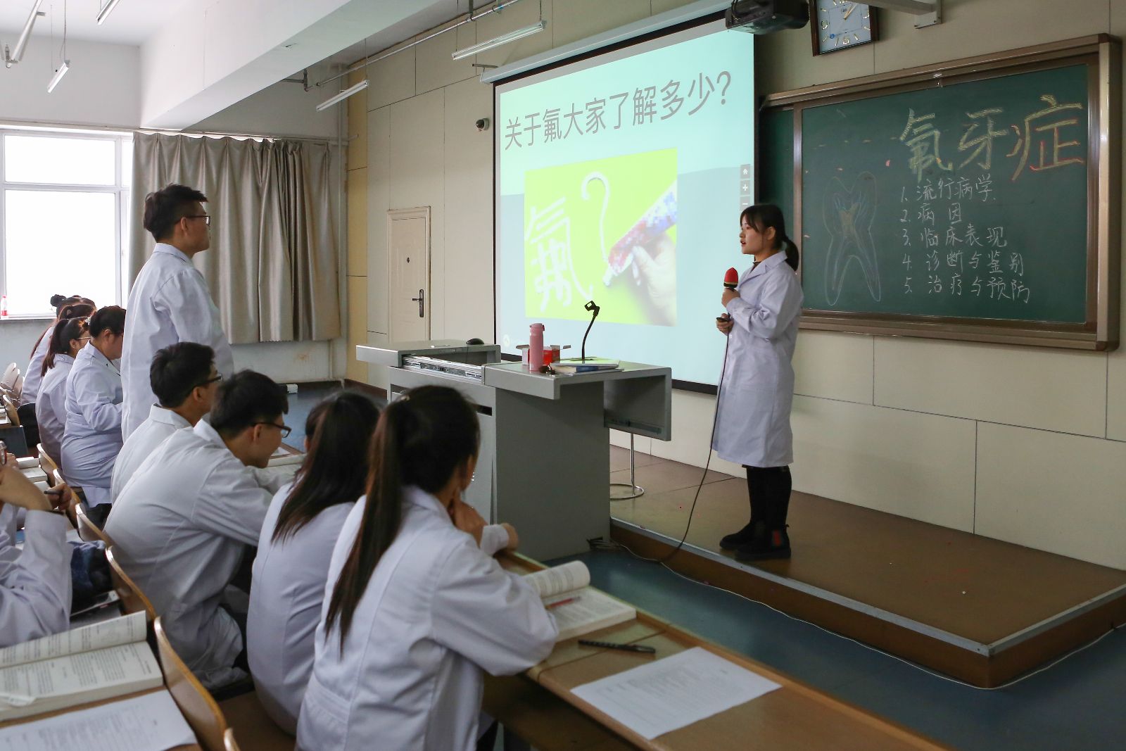 2016年12月20日,我校在南岗校区护理实训楼2楼阶梯教室成功举行了一次教学公开课。口腔医学系口腔内科教研组的青年教师闫闯老师围绕“翻转课堂教学”这一模式开设了题为“牙体硬组织非龋性疾病”两节校级公开课。