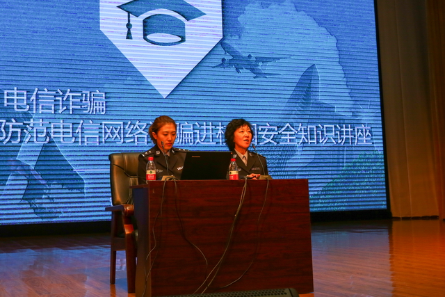10月28日下午,黑龙江省公安厅刑侦总队反诈骗中心工作人员来到我校南岗校区,开展防范电信网络诈骗讲座。刑侦总队许警官应邀作了题为《再见,电信诈骗》防范电信网络诈骗进校园安全知识讲座。