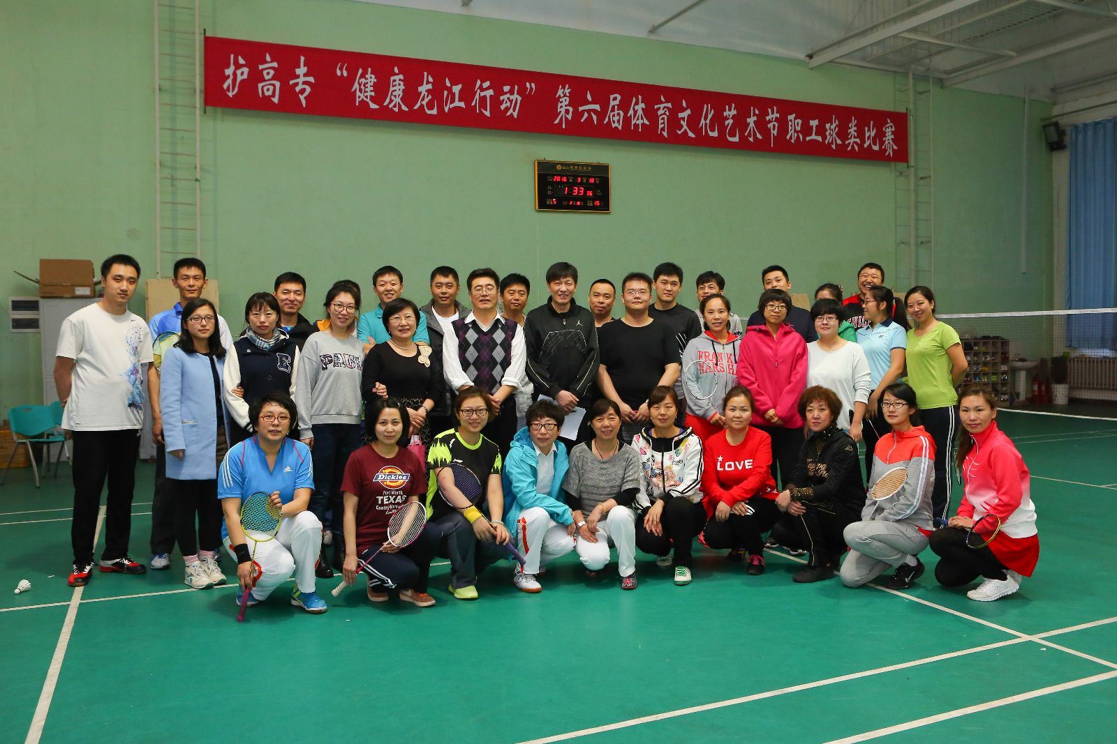 为了丰富教职工的业余文化生活,提高教职工的身体素质,培养团结合作、拼搏进取的精神,努力为教职工搭建相互交流、相互学习的平台,本着友谊第一、比赛第二的原则,由校工会、体育部联合组织开展了教职工羽毛球和乒乓球比赛。两项比赛于2016年3月18、25日在我校南岗校区体育馆同时进行,羽毛球18个代表队,乒乓球10个代表队。参赛教职工在比赛中发扬了团结、进取、和谐、健康的精神,赛出了水平,收获了乐趣,精彩的场面不断涌现,充分体现了团结协作、自信自强的校园体育文化的正能量。经过两天紧张又快乐的激烈角逐,比赛在各分会代表队的热情参与和共同努力下圆满结束。羽毛球比赛的成绩是:行政第一分会获得第一名,体育分会获得第二名,行政第四分会(1队)、行政第二分会获得第三名。乒乓球比赛成绩是:行政第四分会(2队)获得第一名,行政第一分会获得第二名,行政第四分会(1队)、临床医学系分会获得第三名。