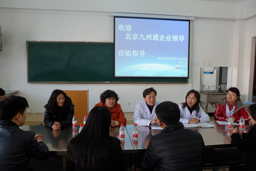 北京、天津九州通医药有限公司招聘经理刘宇航等一行3人于2016年3月15 日来我校进行校企合作、2015级实习学生面试等事宜在药学院进行会晤。在阿城校区药学院,孙琳校长、王玮英主任、赵秀梅书记、赵霞书记、招生就业处李新华、王冠老师,省外实习指导教师陶红艳、药学院辅导员及专业负责人参加会议。