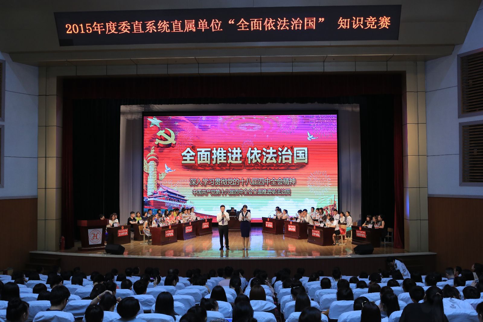 6月19日下午,黑龙江省卫生和计划生育委员会直属单位2015年度“全面依法治国”知识竞赛在我校南岗校区天使剧场拉开了帷幕。