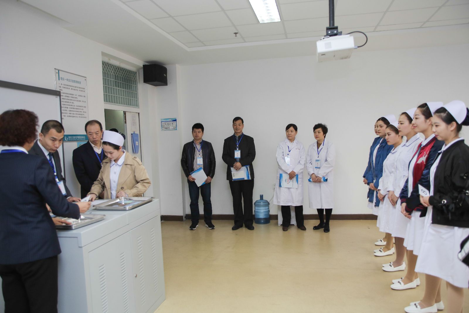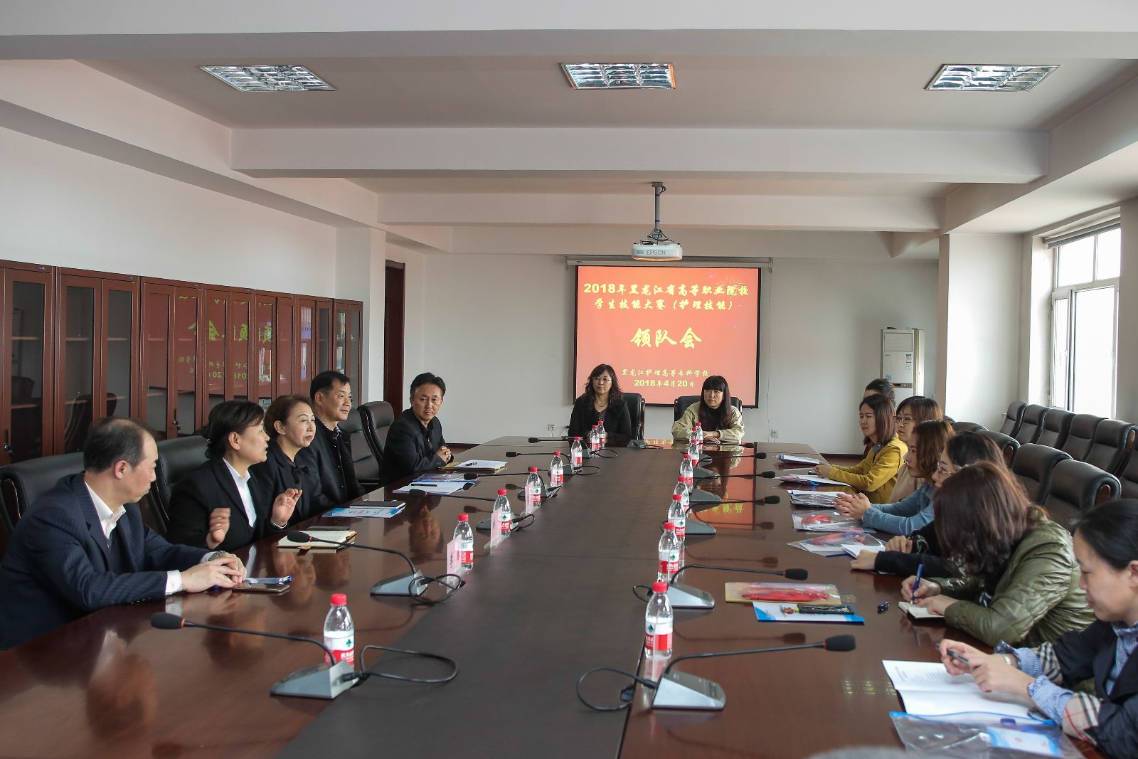 20日下午,大赛领队会在十楼举行,赛事总指挥为彭波副校长,护理系等学校各部门密切配合,为第二天的赛事做好精心准备。