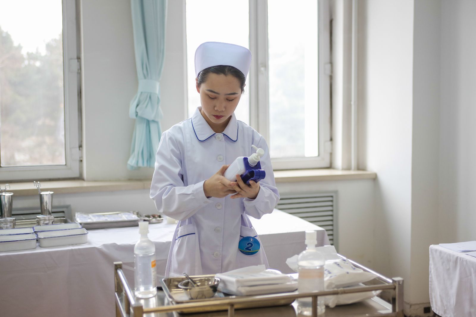 本次大赛我校设置了4个赛室,分别用于完成右踝关节扭伤包扎、心肺复苏、静脉留置针输液、气管切开护理4项护理技术操作,考查选手技能操作执行能力和职业综合能力各参赛选手们认真投入,充分发挥自己的专业知识和娴熟技能,在紧张而激烈的气氛中切磋技艺、展现才华、顺利完成比赛项目。比赛过程中,组委会委派的监督员对赛程进行跟踪,并在赛后对我们的工作给予了充分的肯定。