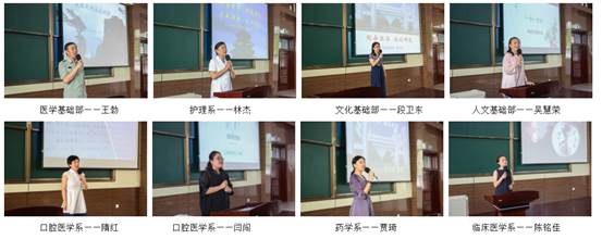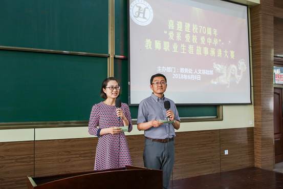 来自我校十二个教学部门的十六位选手,有系部领导、教学精英,也有即将退休的老教师和入职不久的新秀,选手们经过精心准备,精彩纷呈。医学基础部王勃副主任是本次比赛年龄最长的选手,他的《美丽的阿城我的家》,以诙谐幽默的语言,生动再现了医学基础部从领导到老师的敬业、爱系爱校的真挚情怀,赢得了现场一阵阵的笑声和掌声;护理系林杰主任的《执着坚守,默默奉献,不断超越,匠心育人》,讲述了连续六年参加全国护理技能大赛的心路历程和体会,表达了以培养高技能、高素质护理人才为使命的坚定信念;文化基础部段卫东主任的《同舟共济,再创辉煌》以流畅的语言表达出一位部门负责人的工作热情;人文基础部吴慧荣主任的《一念一世界》、口腔医学系隋红副主任的《圆梦龙护专》、口腔医学系闫闯老师的《滴答时钟》、药学系贾琦副主任的《感恩有你,成长相伴》、临床医学系陈铭佳副主任的《走着》、临床医学系张葳老师的《我和我的龙护专》、涉外护理系史迎新老师的《一路前行,一路成长》、涉外护理系张璐老师的《不忘初心、无悔的选择》、护理系奚伟老师的《男神的梦想》、计算机中心王伟老师的《感恩,绿叶对根的情谊》、体育部李焕宇老师的《一个人》、思政部朱文艾副主任的《因为有你,人生无悔》、医学检验系孙革新副主任的《鸡血人生之班主任篇》,通过讲述自己的职业生涯故事,演讲者或激情四射,或眼中含泪,或娓娓道来,或百感交集、哽咽无语。精彩的故事让听者时而面色凝重、时而捧腹大笑,在他的生涯中有我的故事,表达着对龙护专强烈的热爱之情,表达着对教师职业、对学生的热爱之情,表达着对祖国的热爱之情。