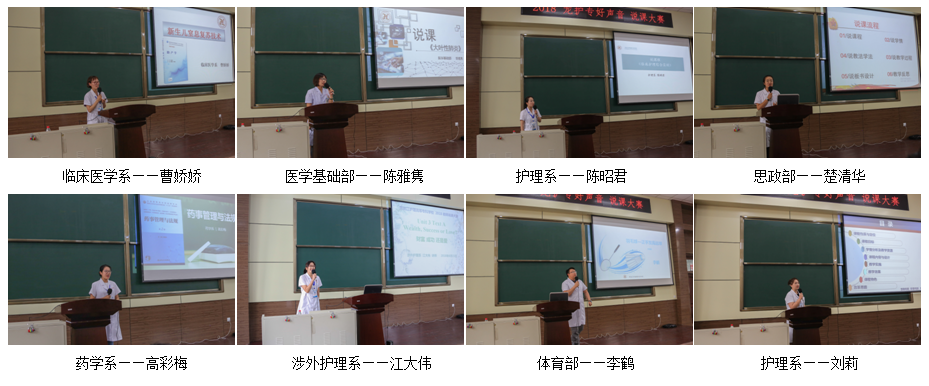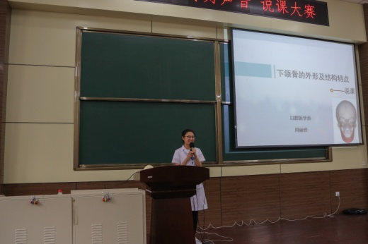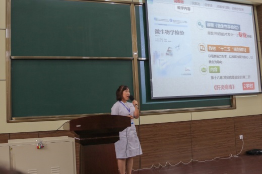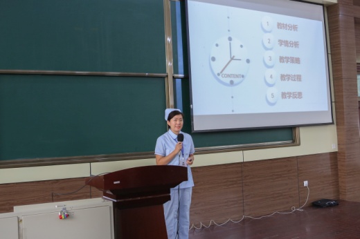 来自学校十二个教学部门13名优秀教师参加大赛,护理系副主任陈昭君就《临床护理综合实训》进行说课,她指出,学生应充分了解自身角色,临床护理综合实训作为校内专业课程,可在学生未到岗时明确岗位职责。计算机中心副主任汪颖就《医院信息系统应用》进行说课,她强调,运用现代信息化手段将PBL(基于问题学习)、CBL(基于案例学习)、TBL(基于团队学习)三者相结合,融入课堂教学效果显著。人文基础部教师祝英琪的《朗读》、涉外护理系教师江大伟的《财富、成功还是爱》、口腔医学系教师齐健的《特殊人群口腔保健指导》、医学检验系教师徐丽丹的《肝炎病毒》、护理系教师刘莉的《母婴护理》、医学基础部教师陈雅隽的《大叶性肺炎》、药学系教师高彩梅的《药事管理与法规》、口腔医学系教师周丽佳的《下颌骨的外形结构特点》、临床医学系教师曹娇娇的《新生儿窒息复苏技术》、思政部教师楚清华的《中国特色强军之路》、体育部教师李鹤的《羽毛球-正手发高远球》皆从教材、学情、目标、方法及设计五大方面展开,采取蓝墨云班课、微课堂等多种新型教学手段增强教学效果,有效落实“素质、知识、能力”三驾马车并驾齐驱的教学模式。