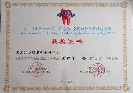 图1 我校获得全国口腔医学技能大赛团体第一名证书