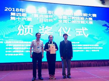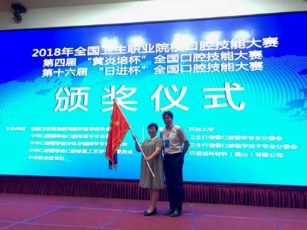 我校口腔医学系选派了2016级口腔医学专业学生于欣、吴琪参加了牙体制备和窝洞制备比赛,并取得了优异成绩。于欣同学获得2018年全国卫生职业院校口腔技能比赛牙体制备一等奖,2018年第十六届“日进杯”全国口腔医学技能大赛牙体制备一等奖、窝洞制备二等奖、第四届“黄炎培杯”全口口腔技能比赛口腔医学组个人全能金奖;吴琪同学获得2018年全国卫生职业院校口腔技能比赛牙体制备一等奖、2018年第十六届“日进杯”全国口腔医学技能大赛牙体制备二等奖;口腔医学系王菲、衣娟、徐佳音、徐欣老师获得优秀指导教师奖;我校荣获全国口腔技能大赛团体第一名,并将全国流动锦旗赢回学校。