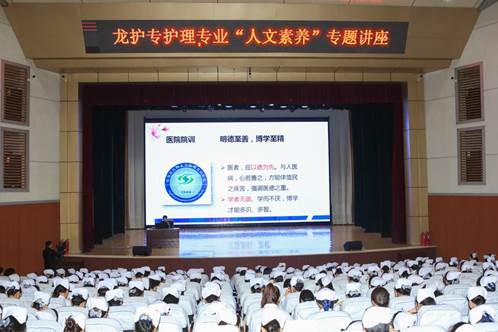 在我校双高建设关键期间,第108个国际护士节到来前夕,为了即将步入实习岗位的2017级同学们加深对护理职业的理解和热爱,成长为一个合格的护士,护理学院于2019年4月12日下午一点在我校南岗校区天使剧场举行“人文素养”专题讲座。参加本次会议的有护理系主任林杰、护理系党支部书记姜哲、临床医学系黄新宇主任、药学系高荣哲主任等各系教师代表及2017届实习生。