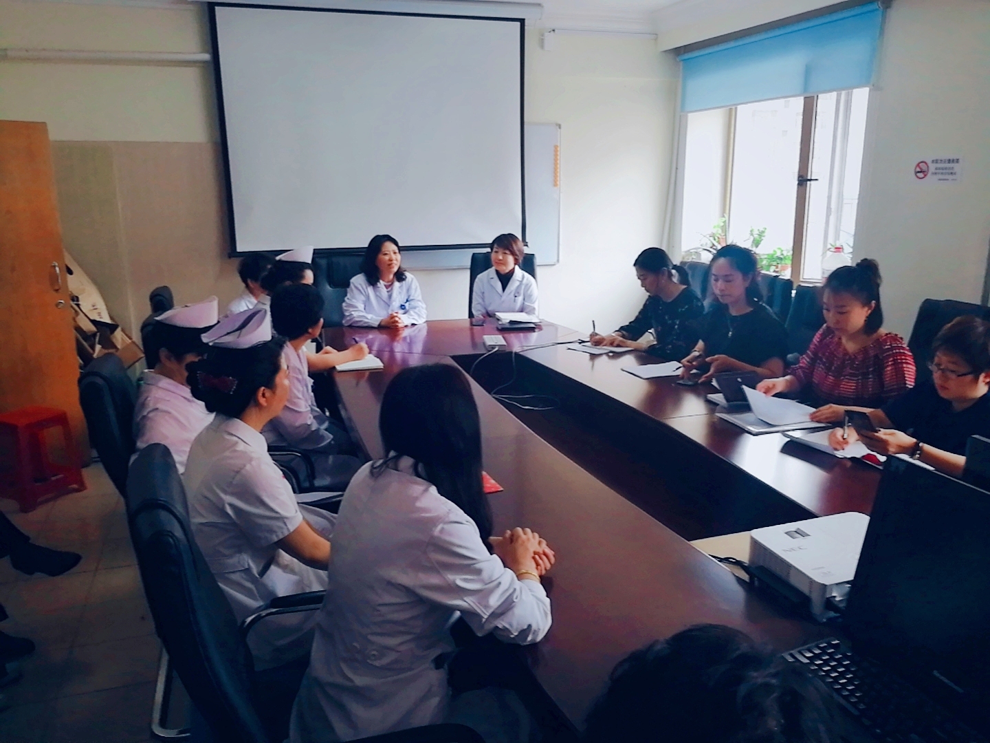 为进一步了解综合素质在临床工作中的具体要求,了解医护患沟通技巧、人文精神的临床体现、美学素养的临床表现、心理学及创新思维的临床应用,使学校素质教育能够与岗位需求和临床应用相对接,提高学校教育的实效与人才培养质量,5月17日,由人文基础部吴慧荣主任率队,人文修养、语言应用、心理、美育、就创业等五个教研室一行23人来到哈尔滨市第一医院进行访谈学习。市第一医院科教科高红艳主任周密安排,邀请了导护中心李淑玲主任、门诊张春莉总护士长、外科高延荣总护士长、骨外四科孙磊护士长,内科优秀带教于熙莹及内分泌二科李征寒等共七位专家参加了座谈会。