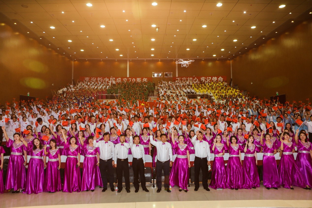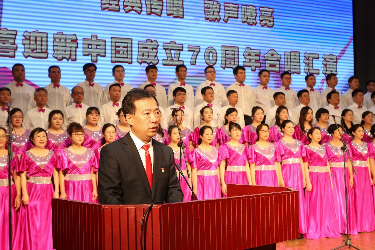 首先,学校党委书记孙希昌发表讲话。孙希昌谈到,值此新中国成立70周年之际,我们用歌声向祖国70华诞献上衷心的祝福。千百年来,中华民族之所以能够历经战乱而不散,饱经风霜而愈加坚韧,历尽沧桑而激流勇进,在世界舞台上书写出东方传奇,靠的就是爱国主义精神的激励。今天,我们唱响爱国赞歌,就是要把爱国主义精神发扬光大,将爱国情、报国志、强国行融入到坚持和发展中国特色社会主义事业、建设社会主义现代化强国、实现中华民族伟大复兴的奋斗之中。孙希昌向全校师生提出希望,要在民族复兴的伟大征程中扛起使命担当、要在新时代的历史方位中弘扬奋斗精神、要在中国特色社会主义伟大实践中创造人生价值。他强调龙护专正伴随着祖国的发展不断成长,龙护专人要以功成不必在我的胸怀和功成必定有我的信心,克服各种困难和障碍,把龙护专发展建设得更好,为实现中华民族伟大复兴贡献力量。