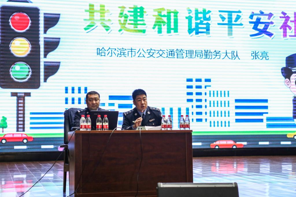 为进一步提高师生交通安全意识,预防和减少校园及周边交通事故的发生。10月18日下午南岗校区保卫处特邀哈尔滨市公安交通管理局勤务大队的张亮警官在南岗校区天使剧场为我校师生开展了一堂生动的交通安全知识讲座。