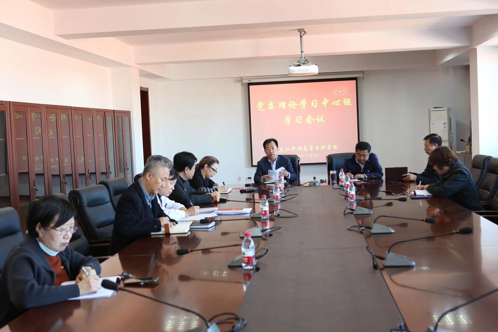 11月8日,黑龙江护理高等专科学校党委理论学习中心组召开学习会议,传达学习党的十九届四中全会精神,学校党委委员、纪委委员参会,党委书记孙希昌主持会议。