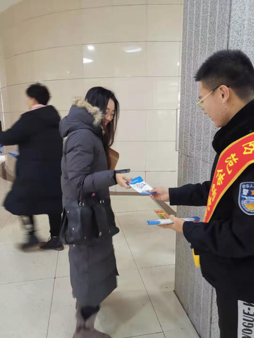 (防范传销志愿者服务队为我校师生发放此次活动宣传手册)