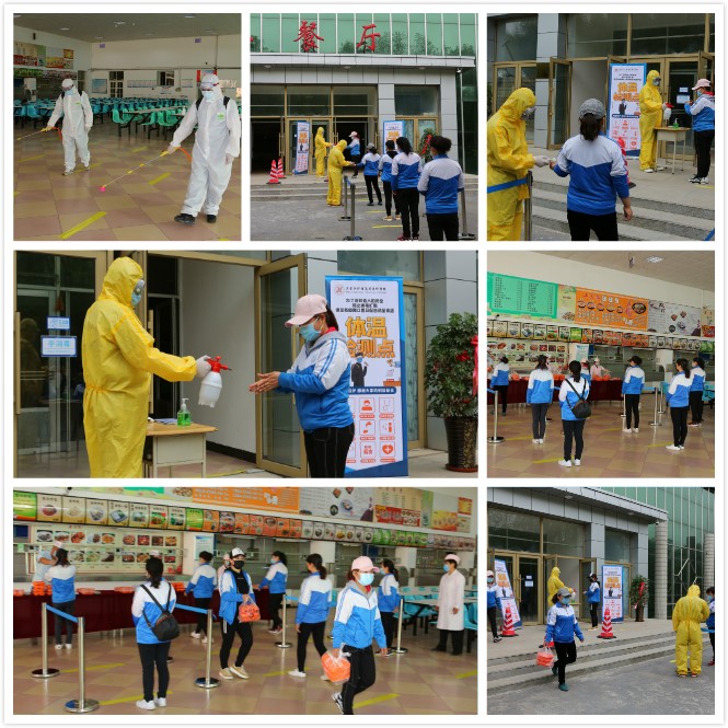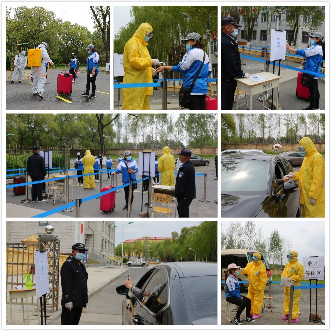 由保卫处识别进入人员和车辆,禁止外来人员进入校园。教职工车辆和人员需测温、扫码方可进入校园。返校学生需佩戴口罩在校外下车带好行李物品进入行人检测通道,按照路标间隔1.5米进行排队,依次进行消毒、测温、扫码,体温正常方可入校。