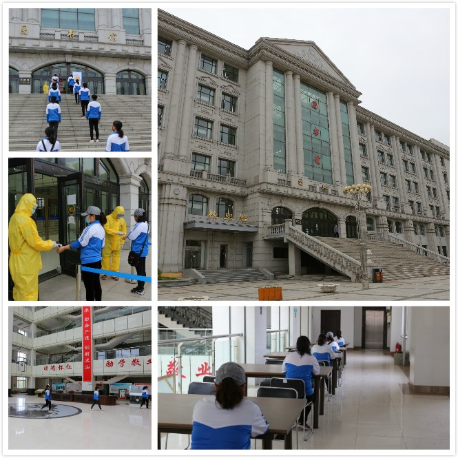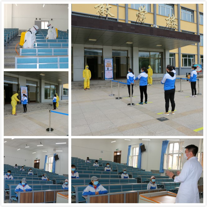 坚持错时、限流、小班额原则进行授课,组织学生在教学楼前有序排队,按指定地标线间隔1.5米距离有序进入,依次通过体温检测,体温正常者按照指示路线行走。到达班级后按照指定标识就坐,任课教师进行考勤登记,并在课间进行教室通风。后勤部门安排专人定时对教学楼教室、实验室、楼道、卫生间进行开窗通风和消毒杀菌工作。
