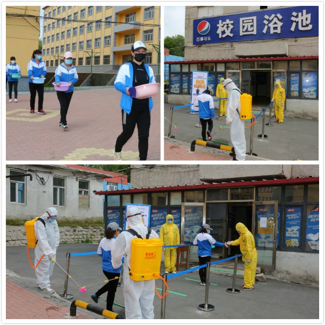 1.浴池门口设立体温检测岗,工作人员佩戴口罩和防护服,对学生进行体温测量,并进行记录,发现体温超过温度≥37.3°C者禁止入内,并及时上报阿城校区疫情防控指挥中心。