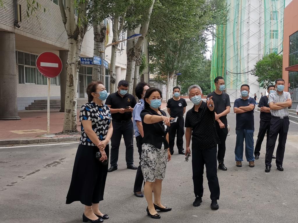 为持续推进学校疫情防控各项任务落实,切实做好开学防疫工作,8月19日下午,校长张晓杰、副校长彭波、副校长夏广军、副校长孙威在相关部门负责人陪同下,实地查看了南岗校区学生公寓、教学楼、食堂、浴池、附近家属区等校园内疫情防控重点区域。