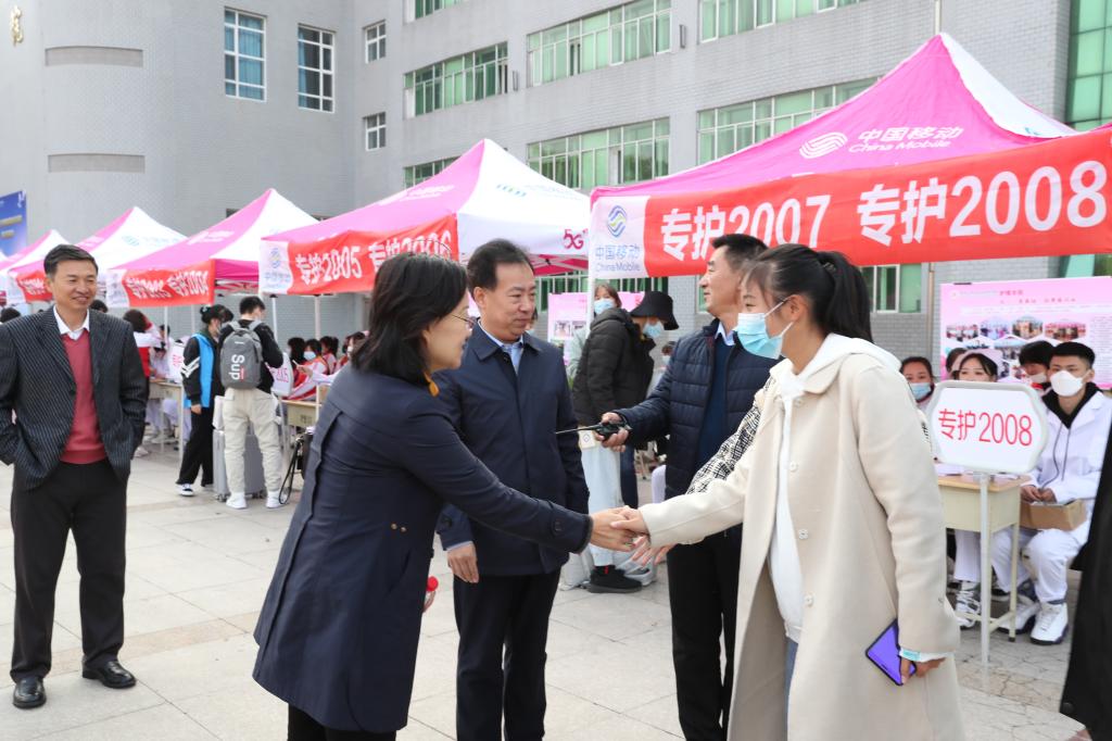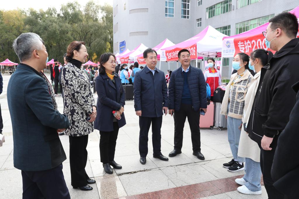 10日上午8时,校党委书记孙希昌,校长张晓杰,副校长彭波,党委副书记、纪检书记闫杰,副校长夏广军,副校长孙威,校办公室主任王凤新、学工处处长程合坤等一行来到阿城校区迎新现场走访慰问。在各新生报到站,校领导亲切问候了工作在迎新一线的教师和学生志愿者,并对他们的辛苦付出表示衷心感谢。今年我校迎来了26名来自新疆阿勒泰职业技术学校的对接学生,校领导同远道而来的同学们互致问候并一一握手,这让同学们倍感温暖贴心。