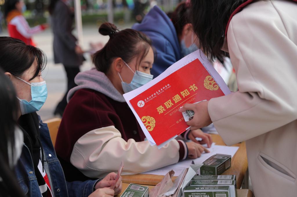 报到现场,新生进入校门后,有序核对身份信息、体温测试、查验健康码,确认齐全方可进入校园。为方便新生快速完成报到流程,学校采取志愿者与新生对接的方式,全程帮助新生办理入学报到手续。新生可在入学之前自行网上缴费,省去了现场排队缴费的环节。
