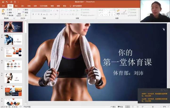 刘沛老师为同学们介绍体育课程与家庭健身。
