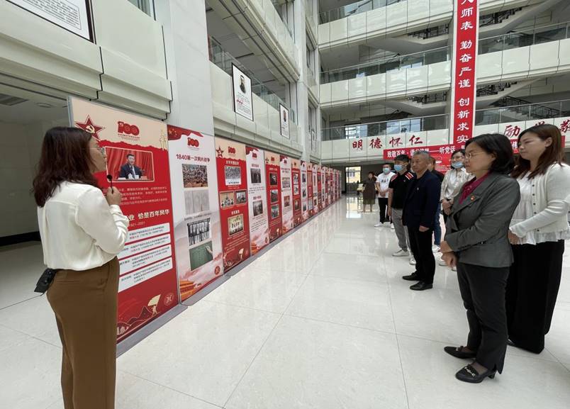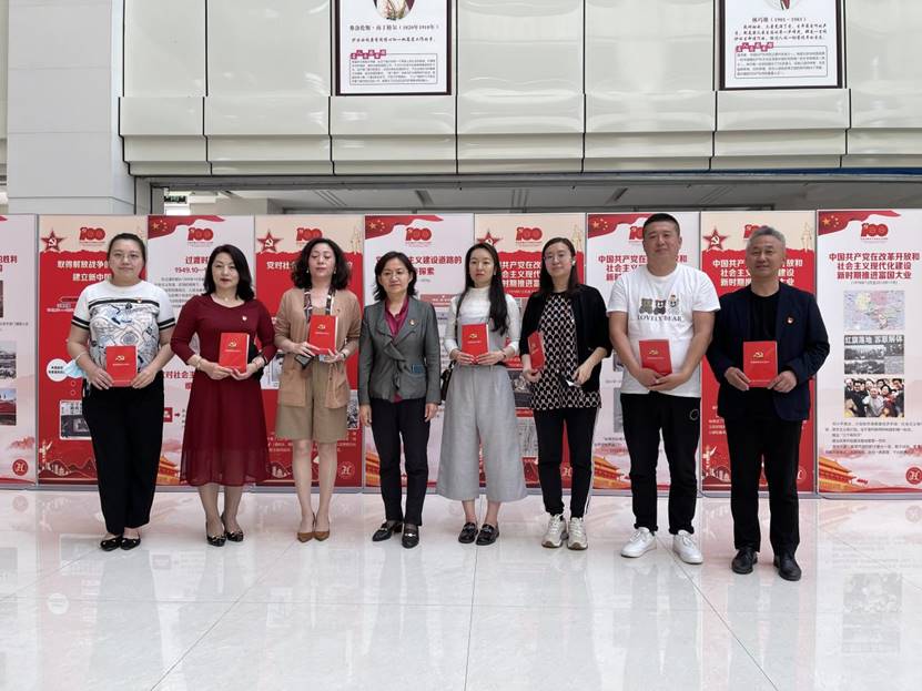 6月9日下午,行政第二党支部全体党员来到阿城校区参加党日活动,接受党史教育和精神洗礼。在校党委副书记、校长张晓杰和行政第二党支部书记王凤新的带领下,党员们来到了图书馆一楼展厅,参观由学校宣传统战部举办的“建党百年图片展”。陈列展由“开天辟地”、“改天换地:兴国大业”、“翻天覆地:复国大业”和“惊天动地:强国大业”四个单元组成,完整展示了中国共产党从新民主主义革命时期到中国特色社会主义新时代推进时期,百年来团结带领中国人民坚守初心使命、不断开拓前行的光辉奋斗历程。